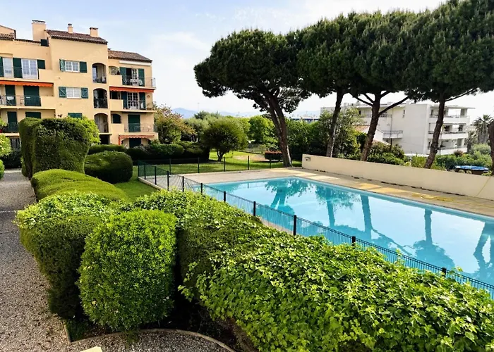 Superb Apartment In Provenzal Residence With Pool 昂蒂布俯瞰着室外游泳池,离海洋世界开车约需10分钟. 住所设有1间卧室和1间浴室.